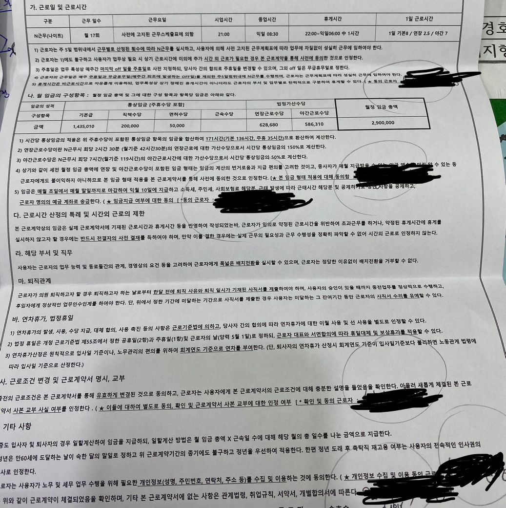 야간전담 간호사로 일하게되며 근로계약서를 작성했는데 정당한가요?...