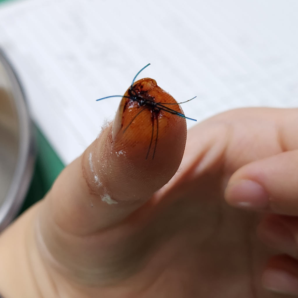손가락 봉합을 받으셨군요. 고생스러우시지요.