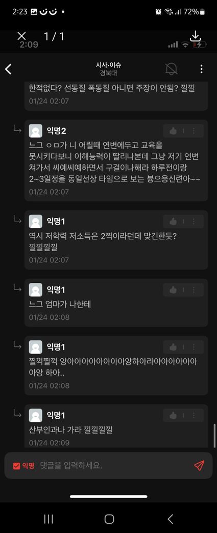 커뮤니티 에타에서 댓글로 싸우면서 성적 패드립을 들었습니다
