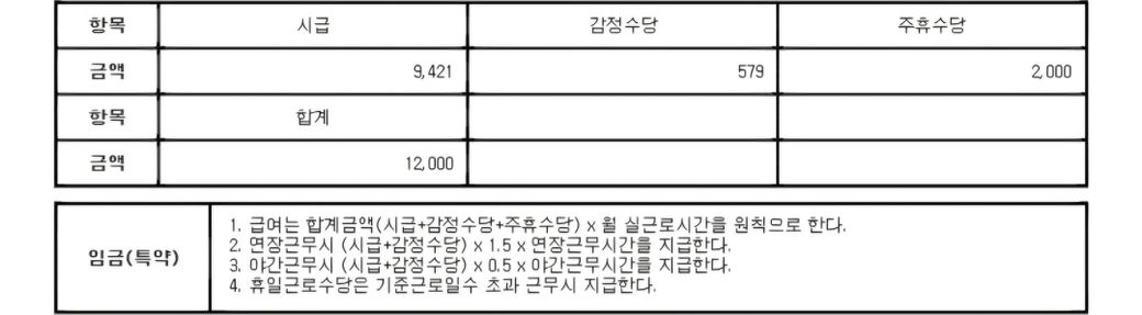 사진처럼 기본시급이 9,421원으로 책정되어있는데 감정수당과 주휴수당 포함해서 합계시급이 12,000원입니다. 2024 최저시급이 9,860원으로 알고있는데 합계 시급이 최저시급보다 높으니 괜찮은걸까요? 궁금합니다