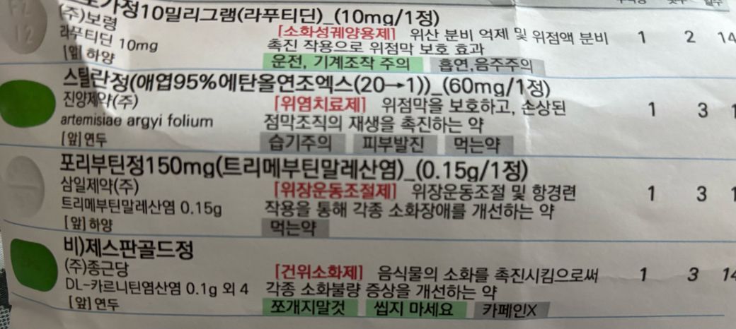 위장 장애에는 첫번째 사진 처방약들이 더 효과 좋아보입니다.