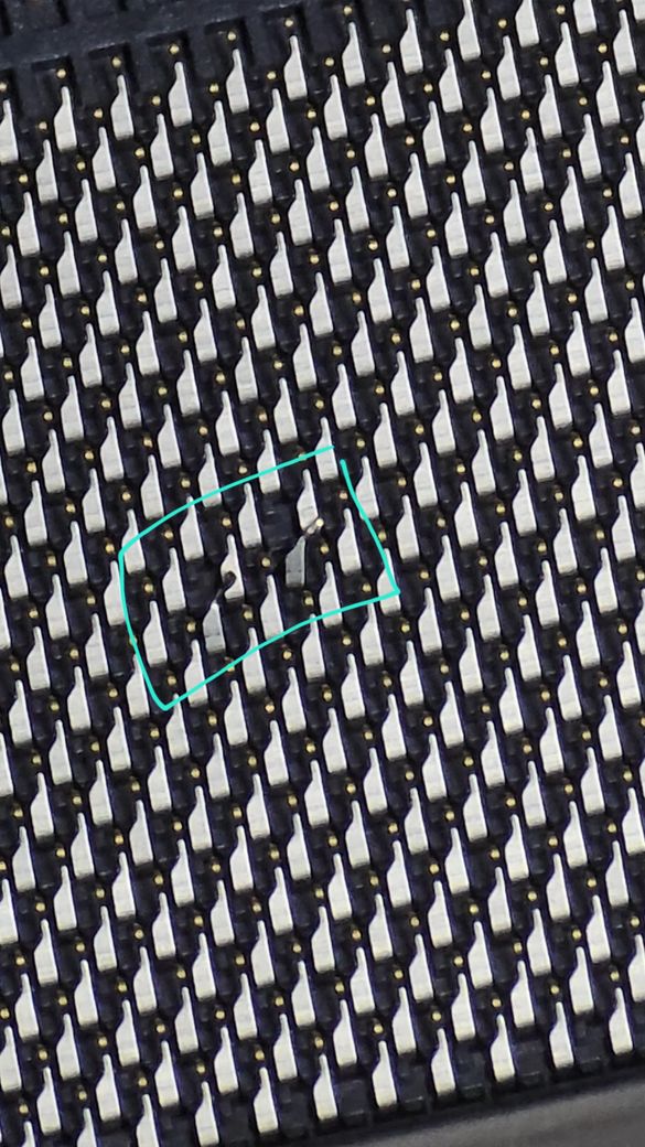 안녕하세요 잡학자식입니다 cpu핀이 휘어있는부분이 문제가 될수도 있겠다는 생각이 듭니다 휘어진핀끝을 보면 재대로 보드와 접선이 되지않을가능성이 높습니다 바늘이나 이쑤시개등으로 살살알 휘어진끝부분을 펴주어 옆에있는 정상핀들에가깝게 만들수있습니다만 자칫하면 핀이 부러져버릴수도 있어 신중이해야합니다...