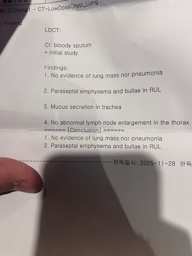 25살 폐에 경미한 기종이 있다고 나왔는데
