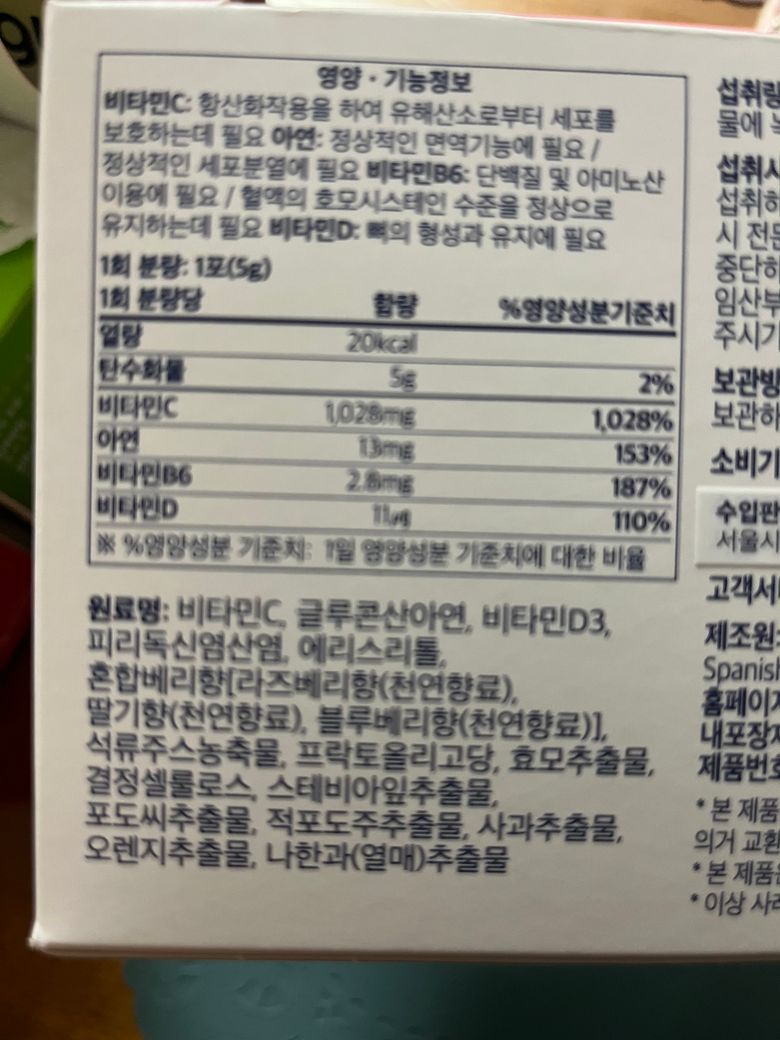 유효성분으로 기재된 것들을 살펴보았을 때 비타민 성분으로 인해