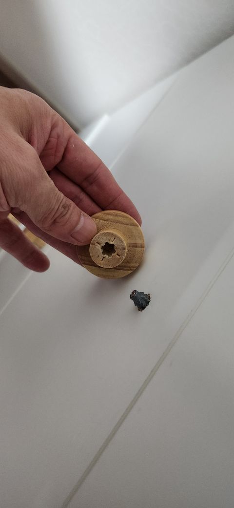 문 손잡이가 빠졌어요. 나사 모양이 독특한데 다시 결합하려면 어떻게 해야 할까요?