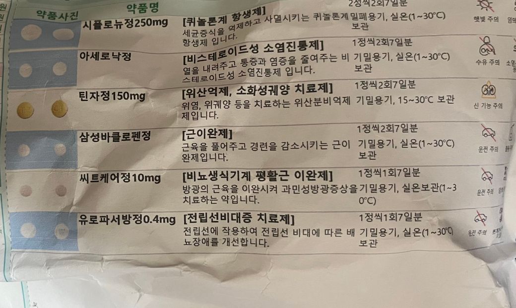 약 종류는 이렇고요 맥주 딱 한잔 마셨습니다 취하지도않았습니다