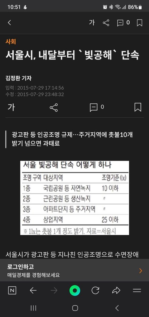 저녁10시쯤 창문앞에서 핸드폰으로 조도측정기로 보면 15lx정도 나옵니다.