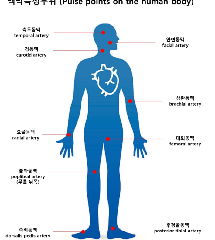 아래 그림 부위에서 맥박을 잘 측정했는지 다시 확인해보시기 바랍니다.