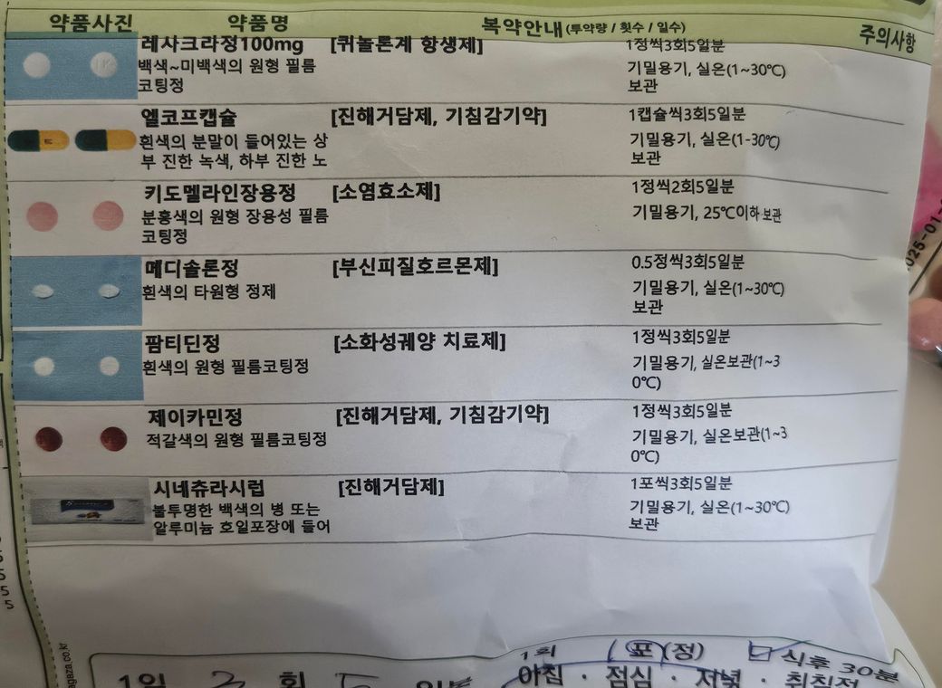 문의주신 사진의 감기약들과 장염약은 함께 복용을 하셔도 괜찮으며, 슈멕톤 현탁액은 다른약들의 흡수를 방해할수 있기에 다른약과는 1시간 이상 시간차를두고 따로 공복에 복용하길 권장드립니다.