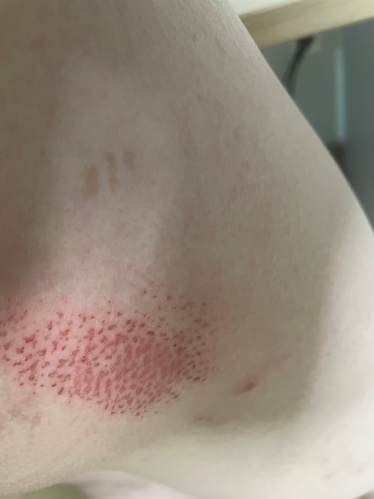 피부가 마찰에 의해 쓸린 듯한 상처로 보여집니다.