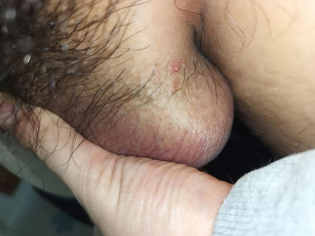다만 사진 판독에는 한계가 있으므로, 만약 통증이 점점 심해지거나 물집이 추가로 생기거나, 얕은 궤양이 넓게 퍼지는 양상이 나타나면 비뇨의학과 진료 후 단순포진 바이러스 검사(병변 면봉 검사 또는 혈청 검사)를 고려하는 것이 안전합니다. 현재 상태라면 과도한 자극이나 압박을 피하고, 청결 유지 정도로 경과 관찰이 적절해 보입니다.