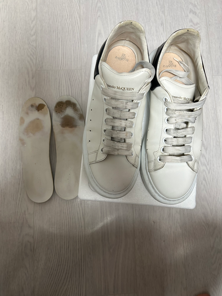 제가 싣고 있는 신발과 비교해 보면 육안으로 봤을때 정품이라 보여집니다. 상태가 조금 헤진부분이라 그렇지만 정품으로 보여지는 신발 바닥의 고유로고와 통가죽과 신발창의 높이 등등으로 평가하자면 진품이라 사료 됩니다. 갠적인 의견입니다.