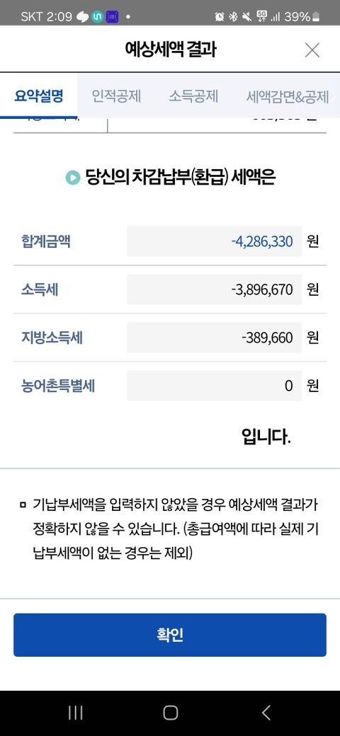 사진은 예상세액계산 결과