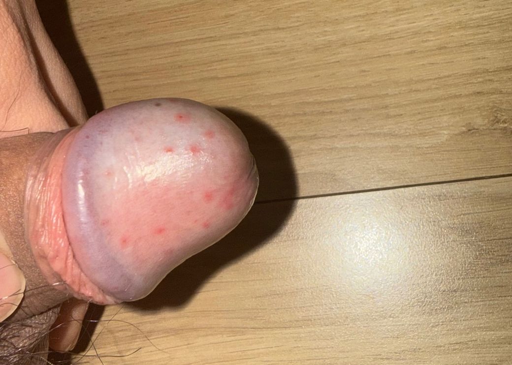 사진 소견으로는 귀두 피부 자극에 의한 비특이적 귀두염, 마찰이나 습기에 따른 자극성 발진, 경미한 모낭염 또는 점상 출혈성 발진 등도 충분히 감별 대상이 됩니다. 특히 최근 성관계, 잦은 세정, 비누·세정제 사용, 콘돔 마찰 등이 있었다면 이런 양상으로 나타날 수 있습니다.