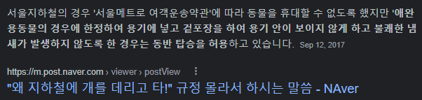 우리 나라에서 전철에 반려견이 탑승한걸. 한번도 못봤는데 우리나라에서는 전철을 탈수 있는지 궁금합니다