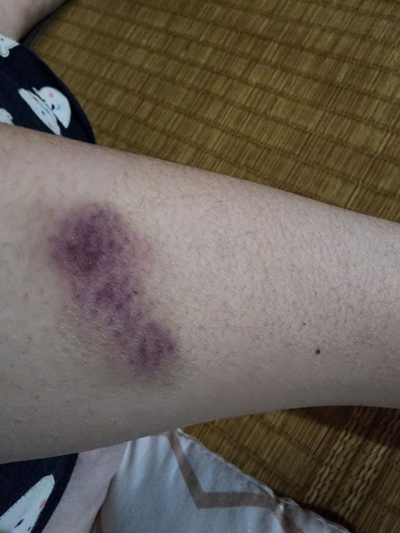 멍울이 만져진다고 하셨으나 그 정체가 무엇인지는 잘 모르겠습니다. 다만 사진에서 보이는 것은 확실히 멍인데 피부 아래쪽에서 출혈이 있었던 것으로 보입니다. 무엇 때문에 이 정도의 출혈이 발생했는지 평가할 필요가 있어 보이므로 가까운 병원을 방문해보시길 바랍니다.