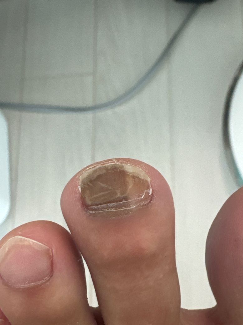 어릴때부터 신발 신으면 이쪽 발가락이 꽉껴서 착색된거라 생각했는데 지금까지 이렇게 있네요. 일직선으로 이렇게 착색되니 흑색종일까 불안하네요. 검진한번 받아봐야할까요?