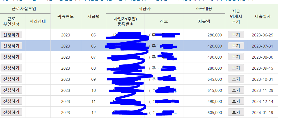아래 사진은 국세청 일용근로소득으로 집계 된 사진입니다.