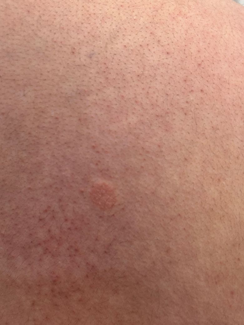 또한, 가려움증이 없다고 하셨는데, 가려움이 없다면 감염성 질환은 아닐 가능성이 높습니다. 하지만 만약 이 반점이 점점 커지거나, 변색되거나, 다른 증상(붓기, 통증 등)이 동반되면 피부과를 방문하여 정확한 진단을 받는 것이 좋습니다. 피부염의 한 종류인 접촉성 피부염이나 약간의 자극에 의한 염증일 수 있지만, 자주 발생하거나 상태가 나아지지 않으면 정식 진료 받는 것이 중요합니다