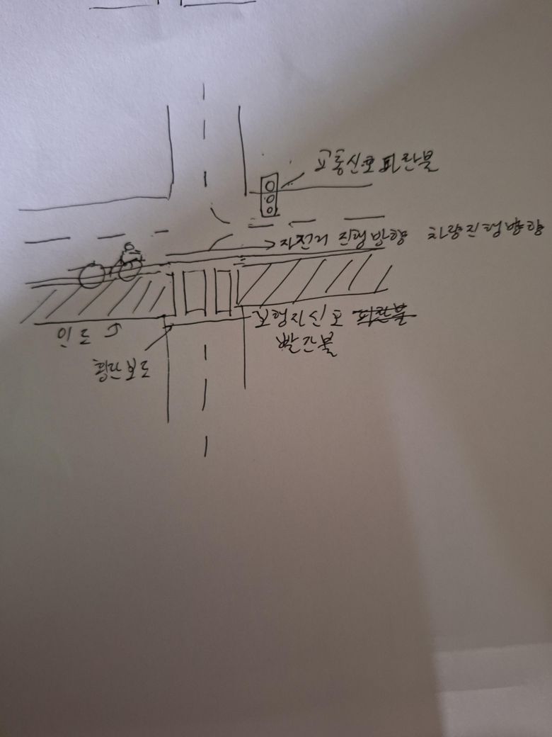 보행자신호가 빨간불이고 차량신호는 파란불인 경우 자전거타고 간다고 치면 횡단보도 안으로만 진입 안하면 차량신호에 맞추면 되는거 맞죠?