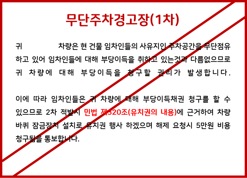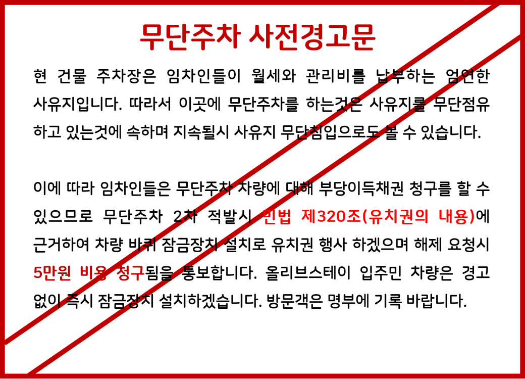 앞건물 무단주차 때문에 스트레스인데 경고문 검토 부탁드려요