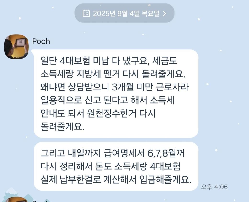 2025.05.10일 입사해서 2025.07.30일 퇴사했습니다. 정규직으로 일했고 일 8시간, 월 220만원으로 근로계약서를 작성했는데 처음에는 소득세와 지방소득세까지 공제 후 지급했다가 퇴사 후 세무사와 이야기 해봤는데 3개월 미만 근로자라 일용직으로 신고가 가능하다며 소득세 안내도 된다고 했다고 소득세는 돌려주겠다고 했는데요. 국세청에 지급명세서는 일용직으로 신고하고 급여는 계약서 작성 당시 급여(220만원)로 제출되었습니다.