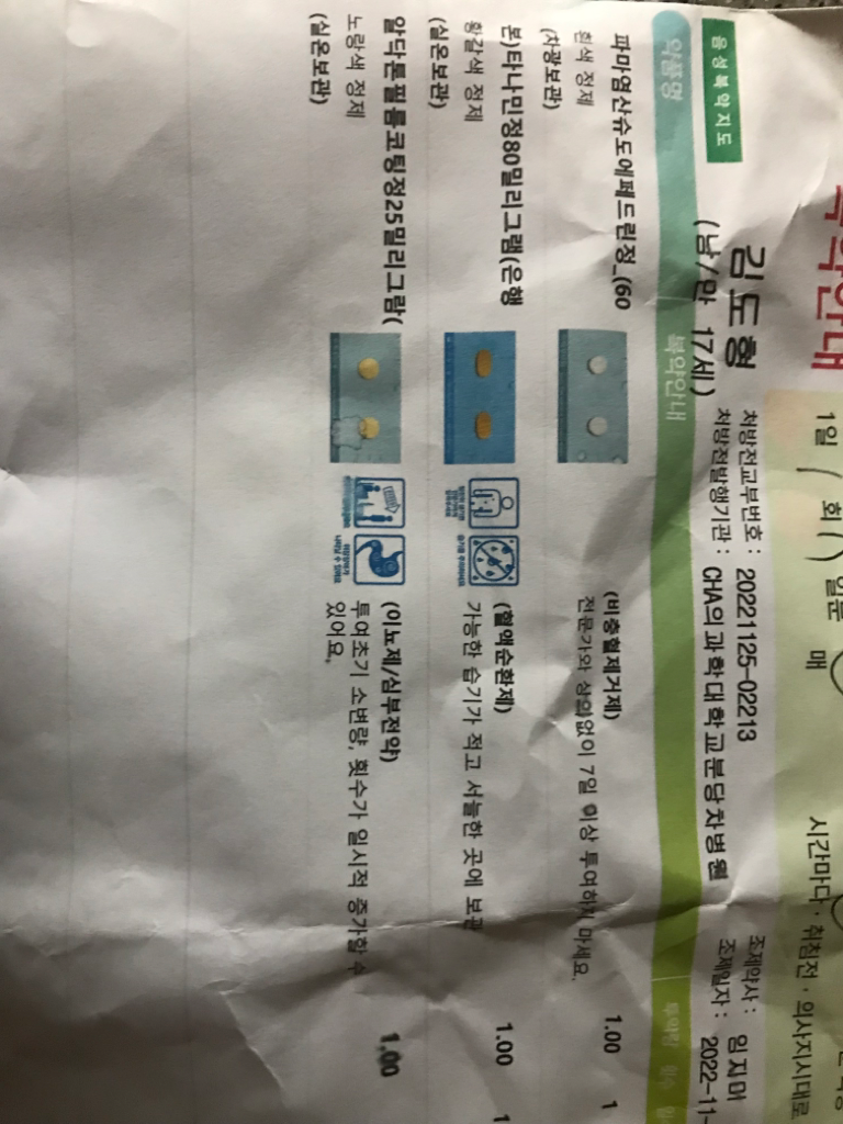 증상이 지속된다면 인근 병원이나 처방 받은 병원 진료를 받으시기 바랍니다