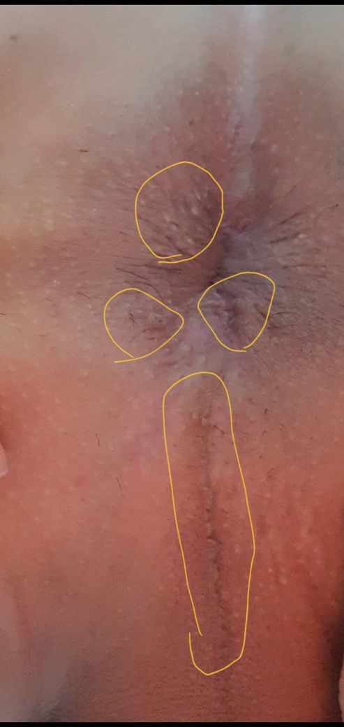 동그라미가 콘딜로마 의심부분이고 밑에 긴동그라미가 회음봉선 가려운 곳입니다