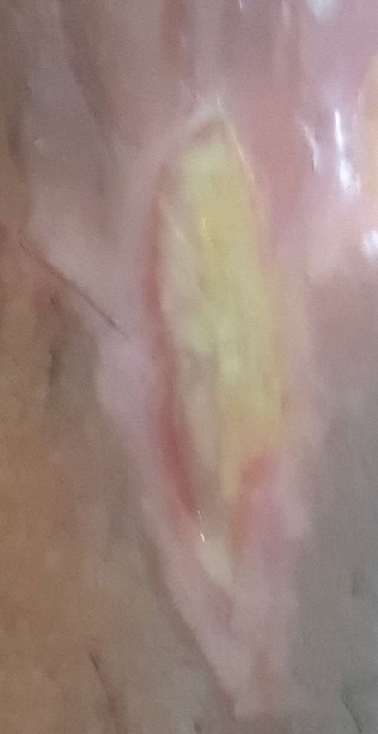 노란색의 부분은 괴사가 되어 떨어져 나올 부위입니다.