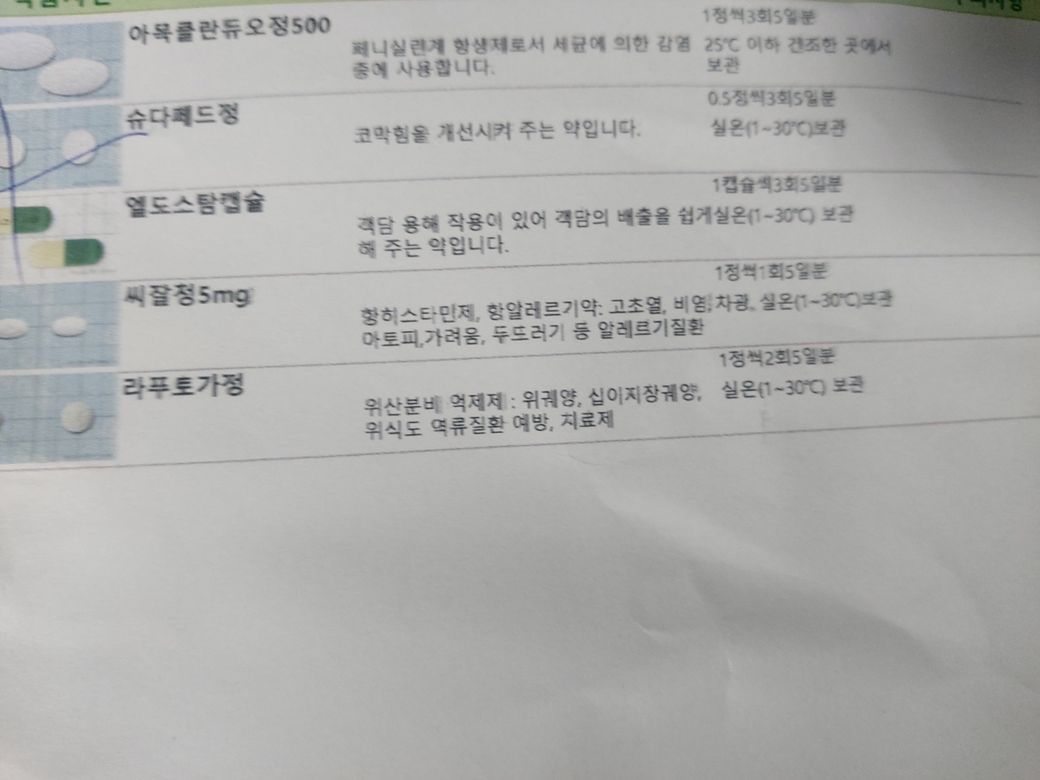 비염약:아목클란듀오,슈다페드정,엘도스탐캡슐,씨정,라푸토가정