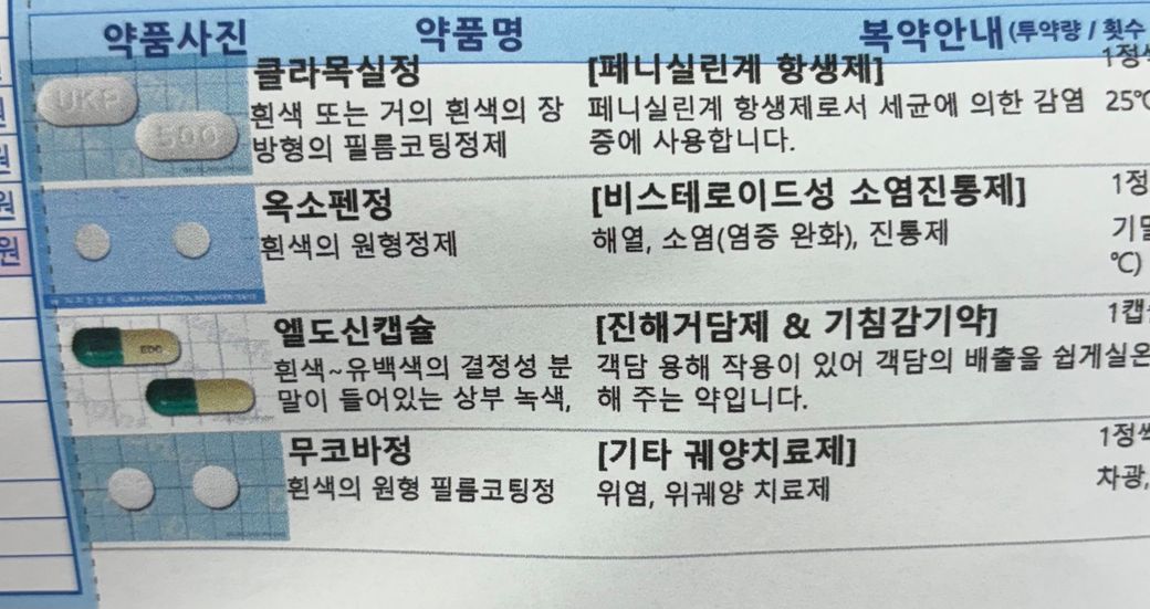 편도염약에서 클라목실정은 드실 필요 없겠네요. 그것을 제외하고 나머지 약들은 복용 가능합니다.