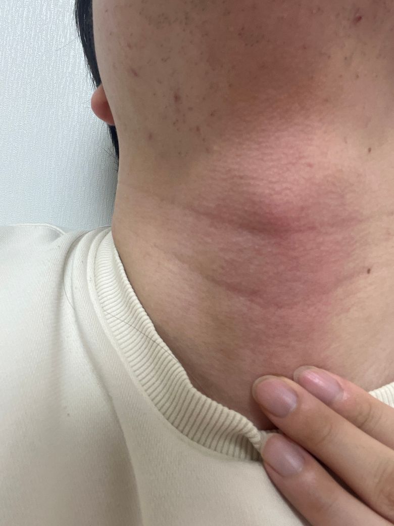 제목 그대로 입니다 며칠전 감기에걸리고 다나았는데 삼 사일째 목소리가 쉬어서 안나아서요 ㅠㅠ 목젓 아랴에 뭔가 툭튀어나온거같운데 이게 결정같은건가해서 질문합니다(사진상 윗부분 튀어나와있는부분이 목젓이고 아랫 부분에 손으로 짚힌부분이 의심부위입니다)