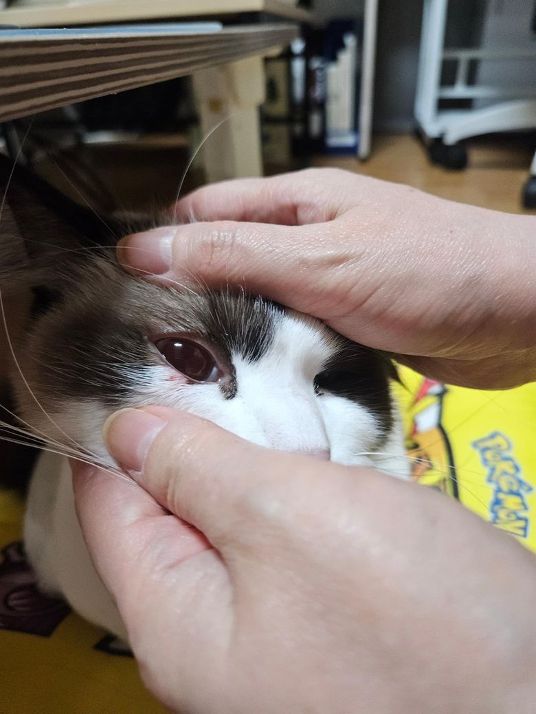 고양이 눈 아래에 피가 났는데 어떻게 할까요ㅠㅠ?? 넥카라를 해줘야 할까요?? 피부연골.ㄹ 발라줄까 했는데 눈 주위라서 걱정됩니다...😢😢😢