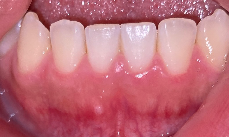 다만 앞니 안쪽에 치석이 조금 쌓여 있습니다