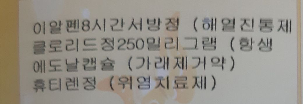 약이 조금 아쉽네요. 콧물이나 코막힘에 대한 약은 전혀 없고 항생제와 진통제 위주로 주셨어요. 약국에라도 가셔서 콧물약을 추가로 사서 드시면 도움이 될 것 같습니다.
