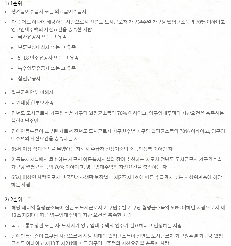 아마 전년도 도시근로자 가구 월평균소득의 50%이하 자격으로 들어오지 않았나 합니다.