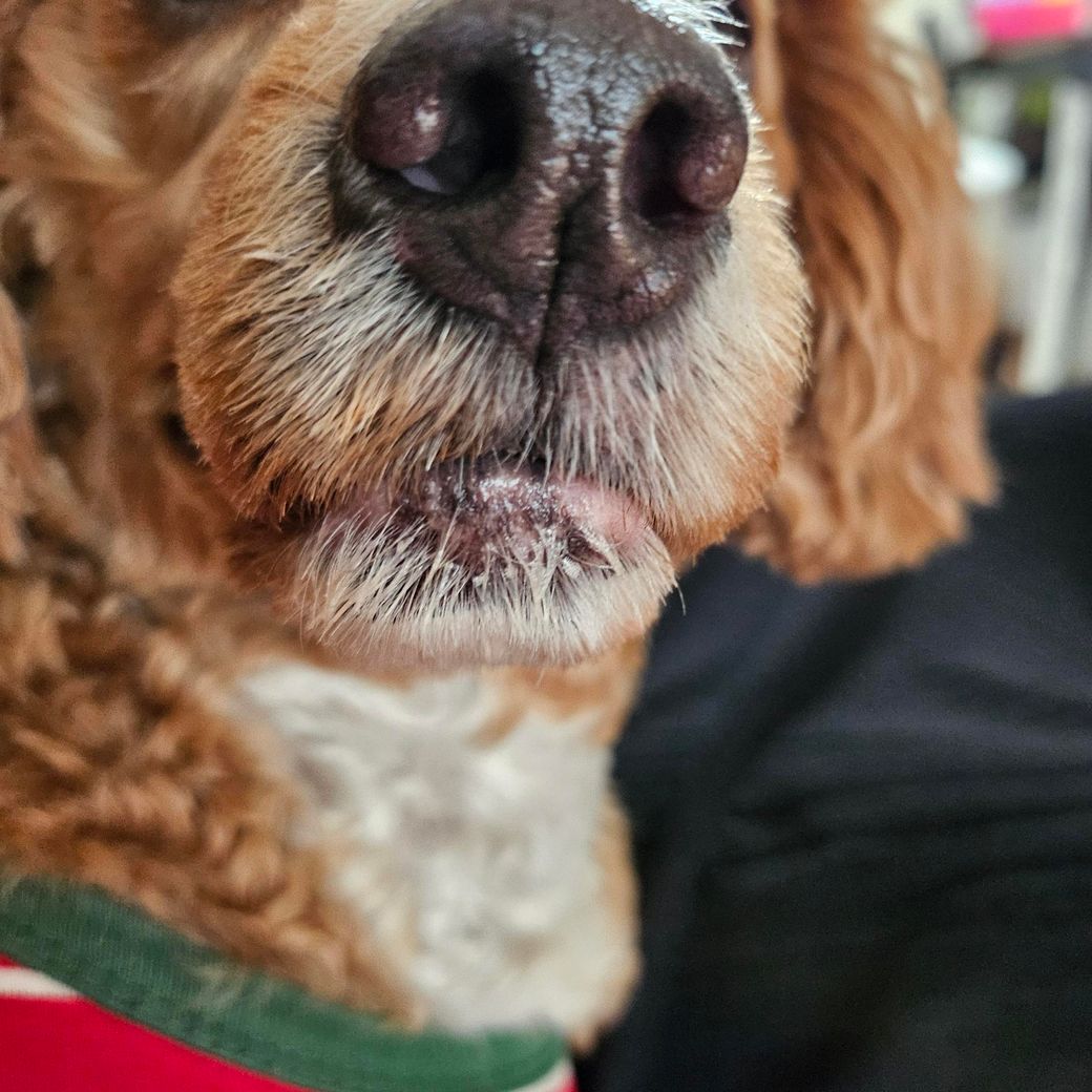 반, 병적 변화에 의한 탈색은 염증이나 면역 반응, 또는 외부 자극으로 인해 색소층 자체가 손상되는 경우입니다. 침이나 음식물 잔여물, 세균, 곰팡이 감염이 반복되면 피부가 미세하게 벗겨지며 색소세포가 파괴되어 코팅이 벗겨지는 듯한 양상을 보일 수 있습니다. 이 경우 입술 주변이 거칠거나 각질이 일어나고, 미세한 딱지가 생기기도 합니다. 또 다른 원인으로는 면역성 질환이 있습니다. 자가면역 반응이 멜라닌 세포를 공격하여 색이 점차 사라지고, 코나 눈 주변까지 번질 수 있습니다. 이런 경우에는 단순 탈색을 넘어 피부 균열, 홍반, 딱지 등의 병변이 함께 나타납니다. 샴푸나 구강청결제, 금속식기 등 외부 자극에 의한 접촉성 피부염에서도 표피가 벗겨지면서 색소층 손상이 일어날 수 있습니다.