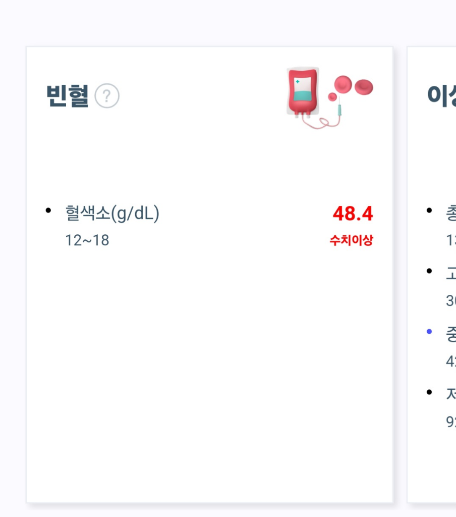 헤모글로빈 수치가 48.4가 나온 것은 검사의 오류라고 보아야 합니다. 재검을 받아보시는게 좋겠습니다.