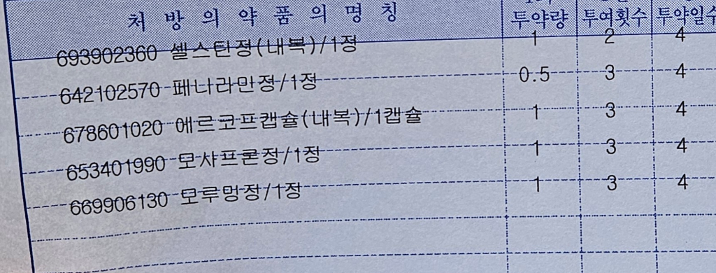 모루밍정 과 펜렉스정이 소염진통제로서 각각 처방되어 있습니다. 모루밍을 빼고 다같이 복용하시는것이 좋겠습니다.