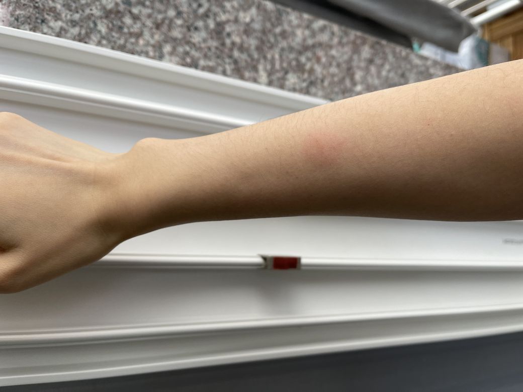 현재 팔에 나는 발적이 심해지신다면 이것은 알러지 반응일수도 있으므로 가까운 의료기관에 내원하시는 것이 좋을것 같습니다.