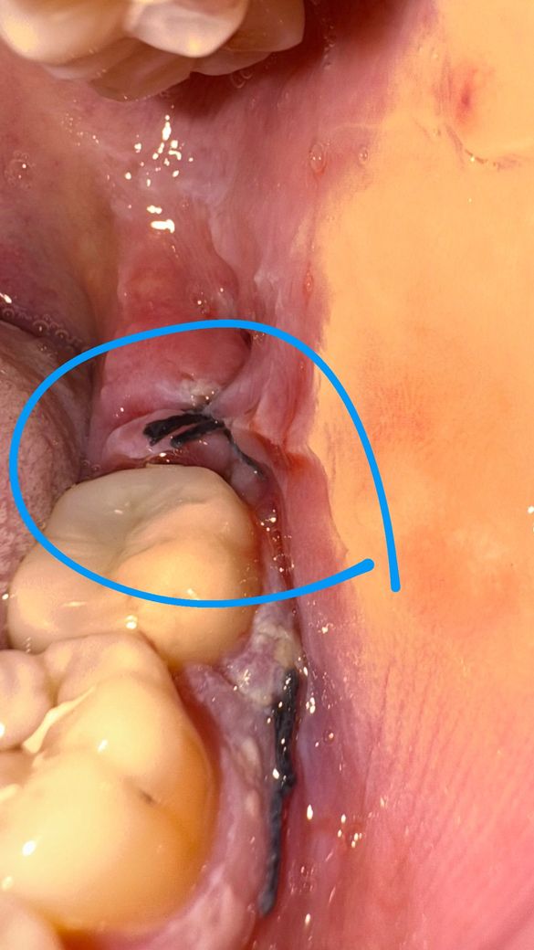 사랑니 발치후 5일차에 꿰맨 위치가 바뀜