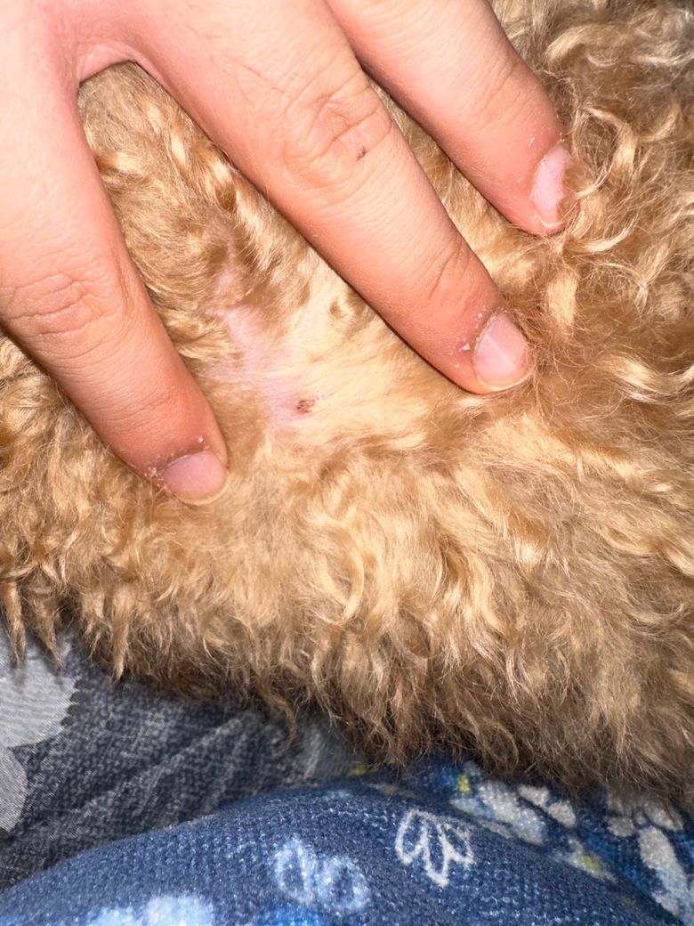 강아지 피부에 딱지 같은게 있는데 이게 뭔지 알려주시면 감사하겠습니다 지금 2주정도 되었는데 병원데리고 가봐야 할까요...?