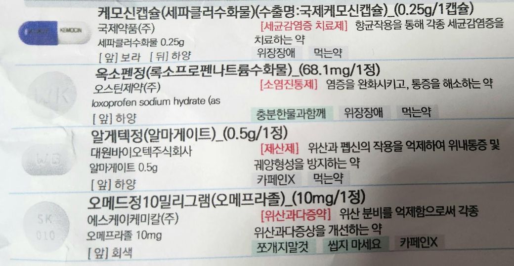 해당 사진에 나온 약을 아침, 저녁 식후 30분에 먹으라고 처방받았는데