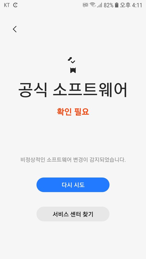 삼성 맴버스 에서 자가진단 에서 공식 소프트웨어 해보니 1번째 사진 공식 소프트웨어 확인필요 라고 나오는데 이것 때문 일까요?