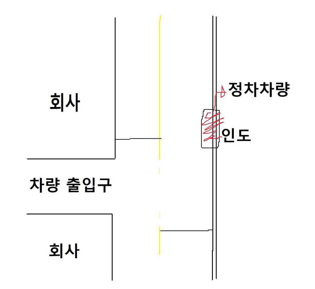 이미지처럼 꺾어야 하는 부분에 차량이 주정차를 하는 차량이 있는데 단속 대상이 맞을까요?