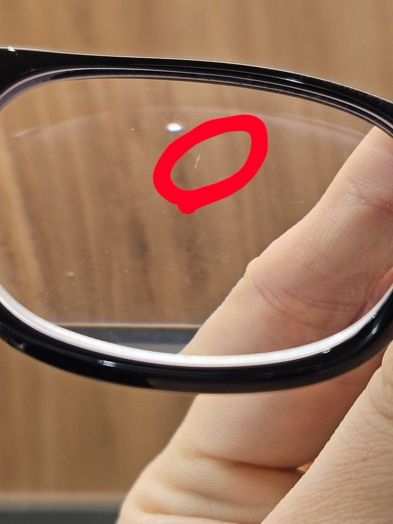 아무리 생각해봐도 이정도로 금이 갈때까지 안경을 떨구거나 한적이없어서 불량이 아닌가 구매했던 안경원에사진보내고 문의 해보니 긁힌거라고 하시더라구요