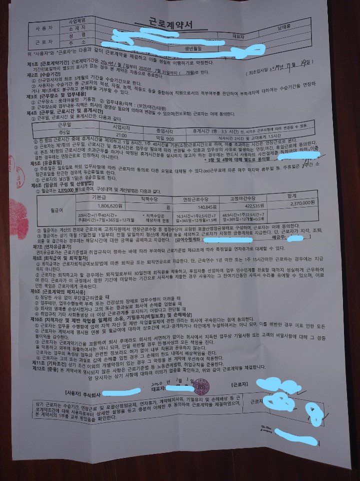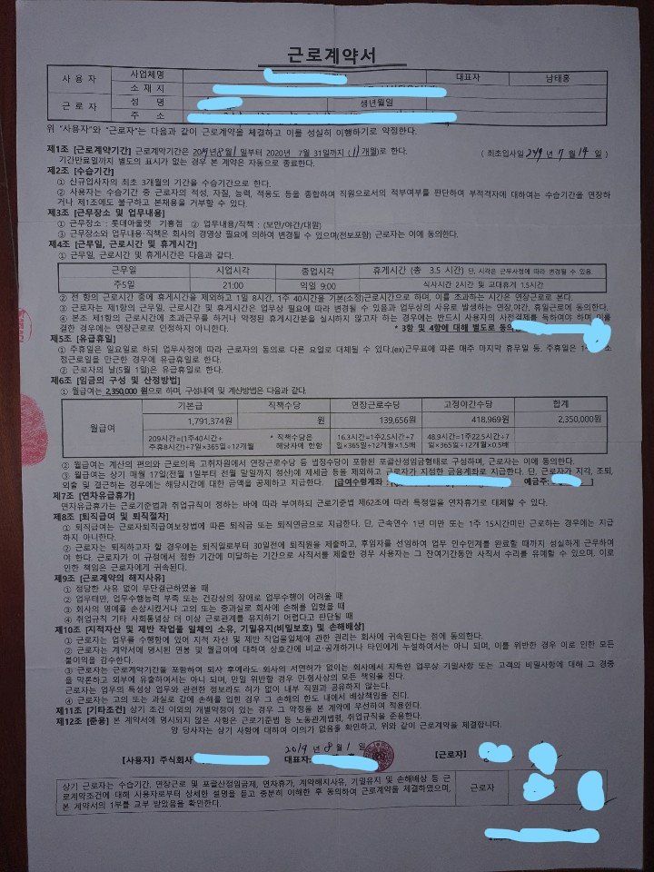 2020년 1월 1일부터 2020년 7월 31일까지 의 근로계약서를 작성하였고,