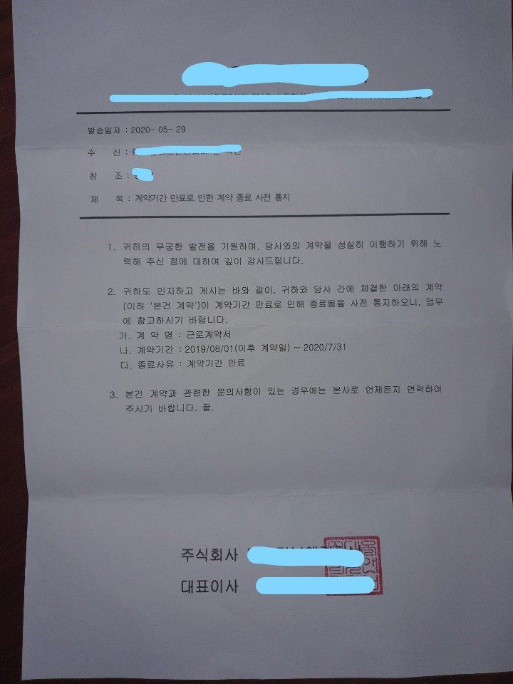 계약기간 만료로 인한 계약종료 사전통지서를 받았습니다.