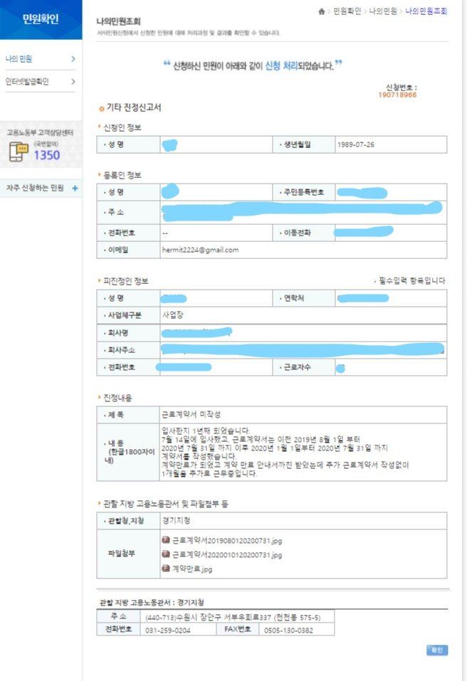 2020년 8월 14일에 근로계약서 미작성 신고를 했습니다.
