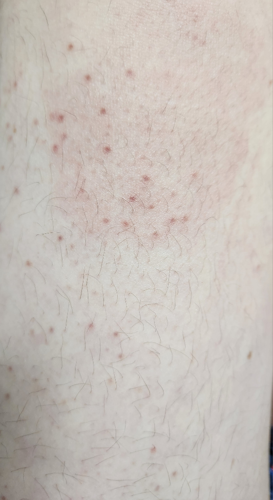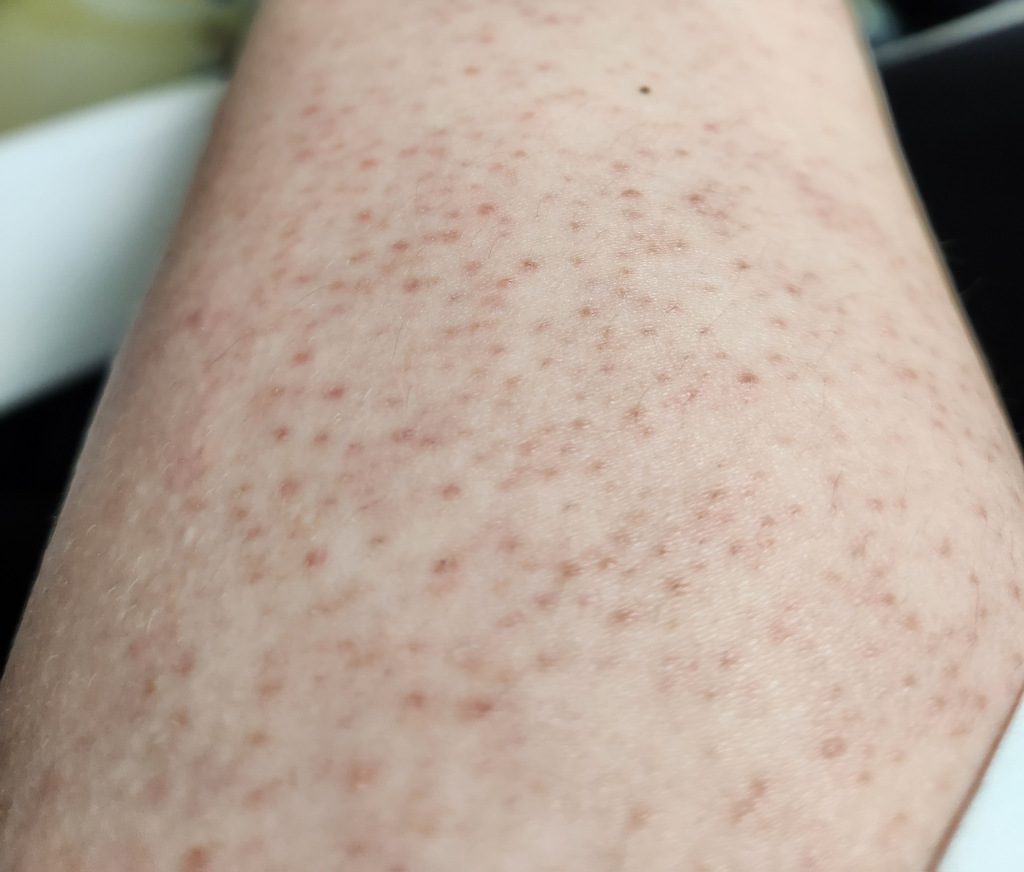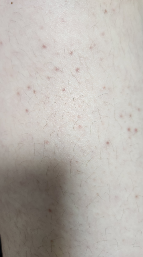 사진의 소견을 통해서 정확하게 구체적인 감별 진단이 가능하지는 않지만, 사진의 소견을 통해서 보았을 때에는 모공각화증일 가능성이 높아 보입니다. 관련하여서는 피부과에서 구체적인 감별 진단을 받은 뒤 적절한 치료를 받으시길 권고드립니다.